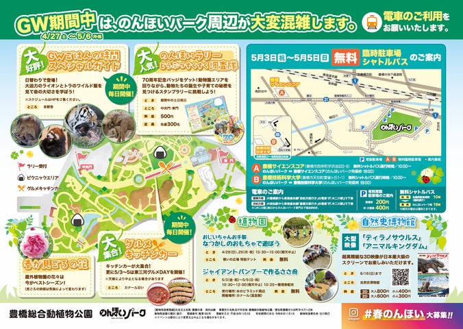 さらに、無料の臨時駐車場やシャトルバスも運行されるので、電車での来園がおすすめです。