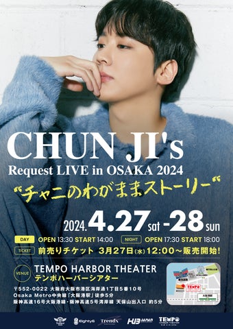 2024年4月27日と28日に大阪のTEMPO HARBOR THEATERで開催される「CHUN JI’s Request LIVE in OSAKA 2024 – チャニのわがままストーリー」の公演情報です。