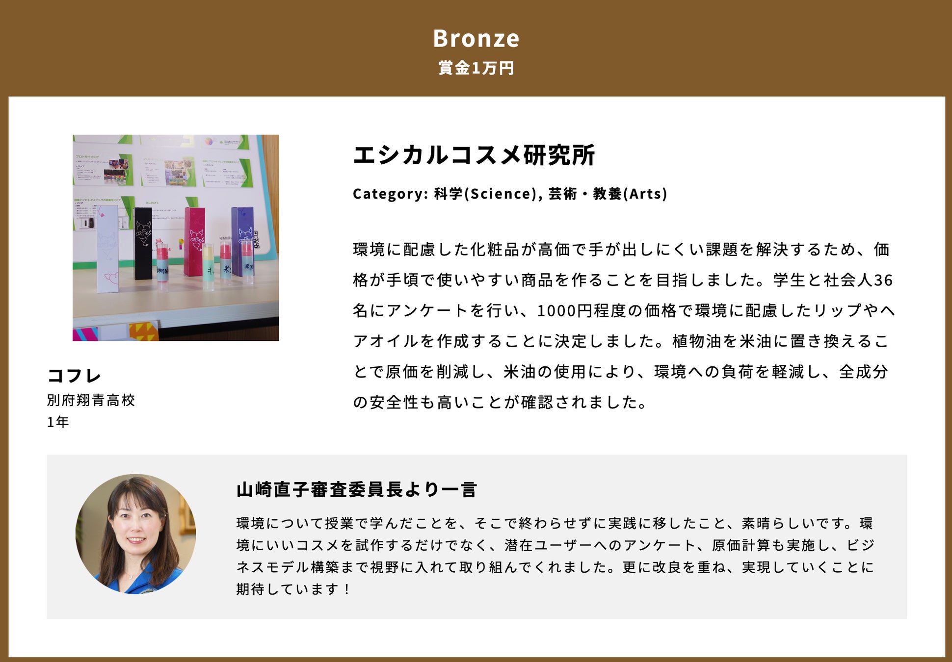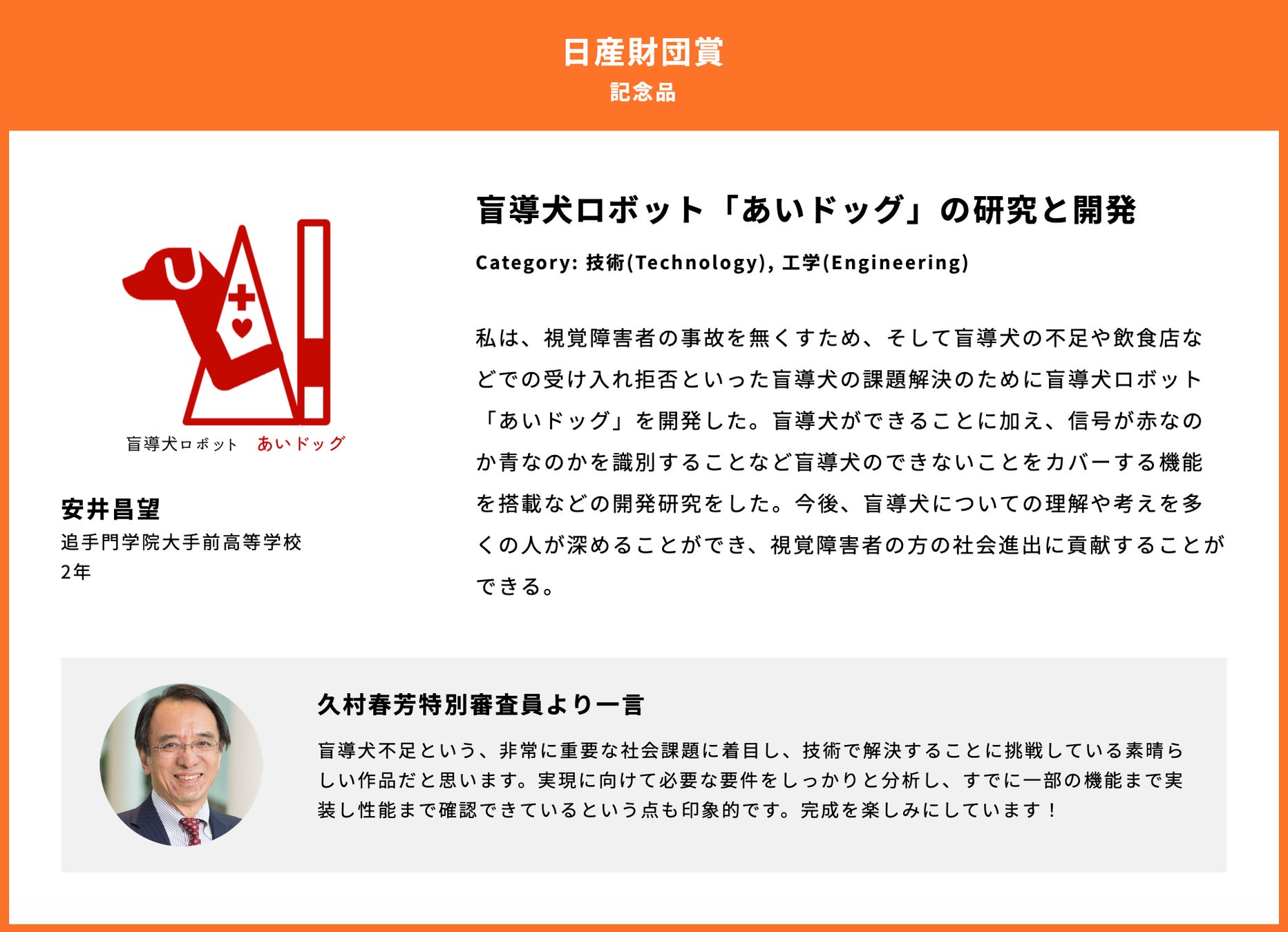 審査委員長は元JAXA宇宙飛行士の山崎直子氏で、特別審査員には公益財団法人日産財団の久村春芳氏が務めました。