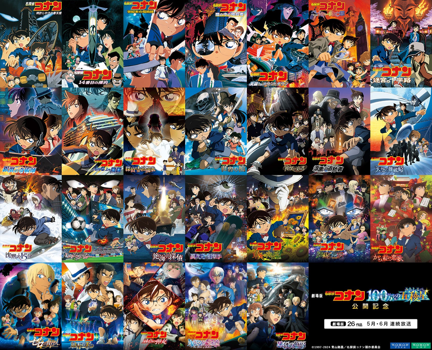 2024年4月12日から公開中の『名探偵コナン 100万ドルの五稜星』を記念して、WOWOWでは過去26作品を5月と6月に公開年順に放送します。