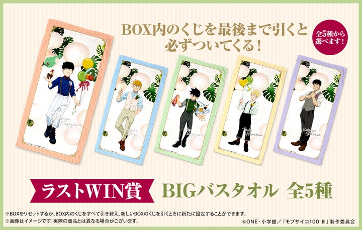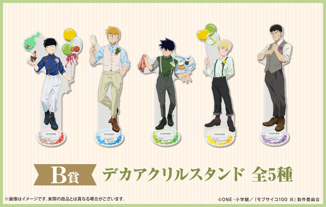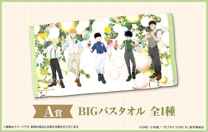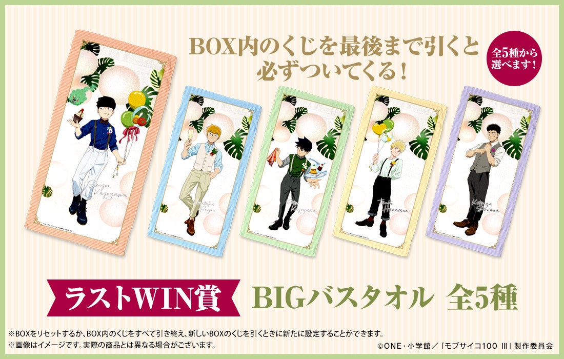 TVアニメ「モブサイコ100 Ⅲ」の描き下ろしイラストを使用したグッズがWEBくじで登場します!A賞のBIGバスタオルやB賞のデカアクリルスタンドなど豪華なラインナップが揃っています。