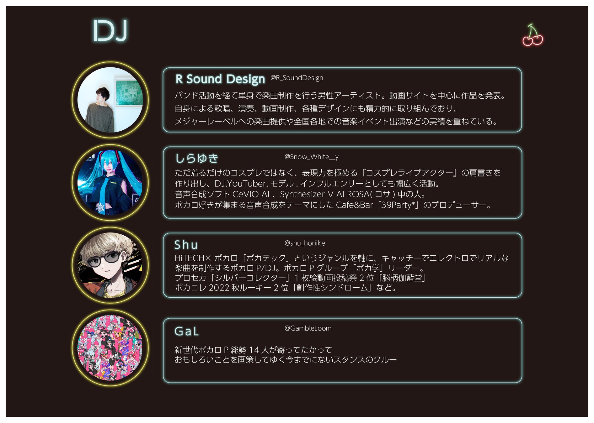 - 出演者に”R Sound Design”や”しらゆき”参加