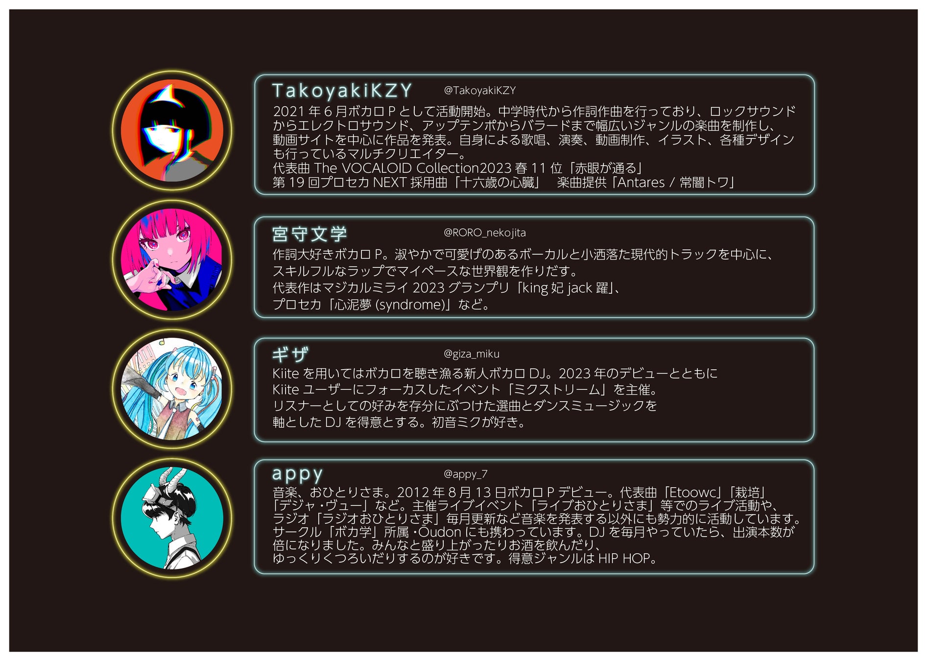 イベントでは、ネットを中心に活動するアーティストの支援を目指し、ボカロPやボカロ好きが交流できる場を提供します。