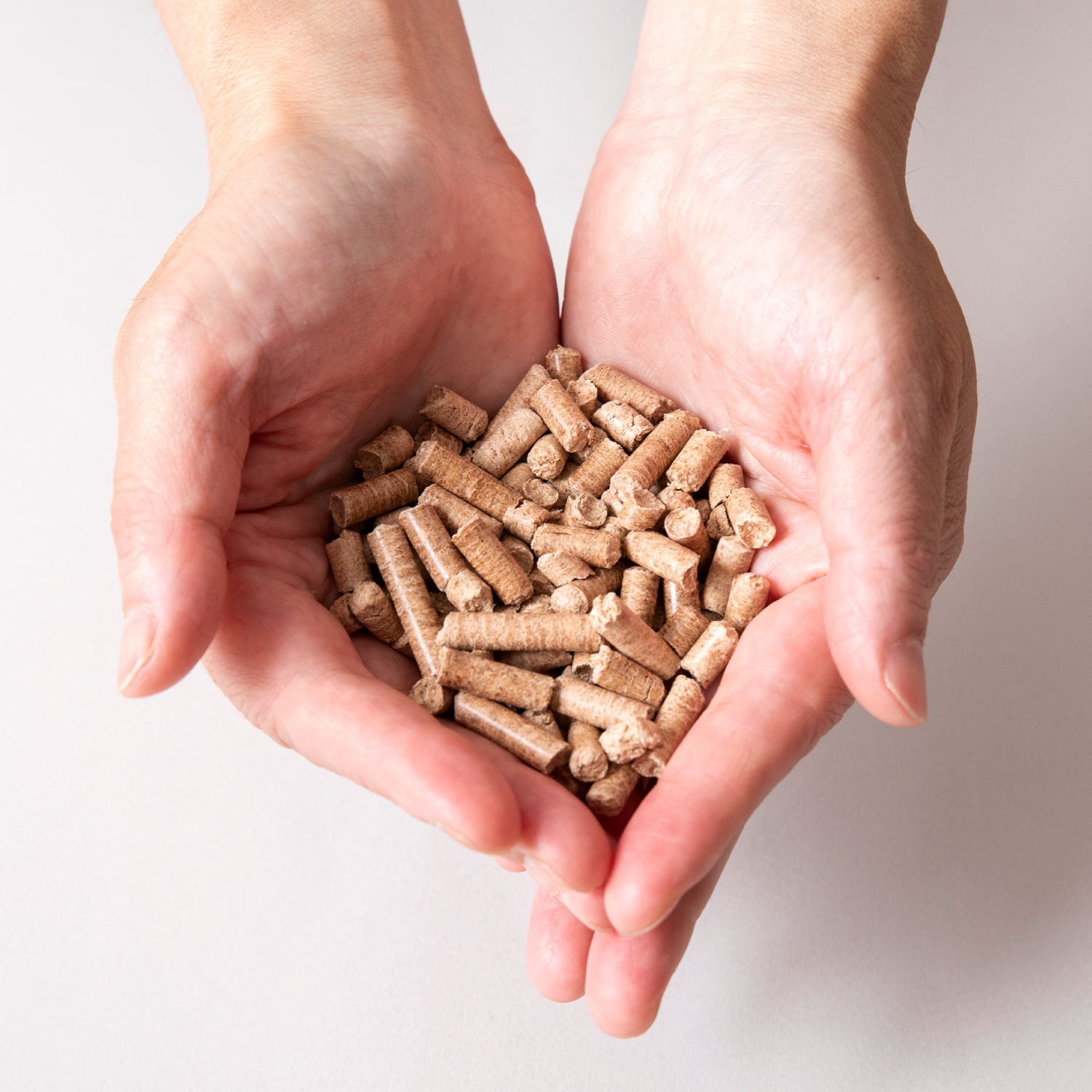 「森になる猫砂」は添加物を一切使用せず、国産木材(宮城県の栗駒山)の製材時に出た木くずを圧縮して作られた猫砂です。トイレから出たあとに足をよく舐める猫や猫砂を処理する人にやさしい製法で作られています。