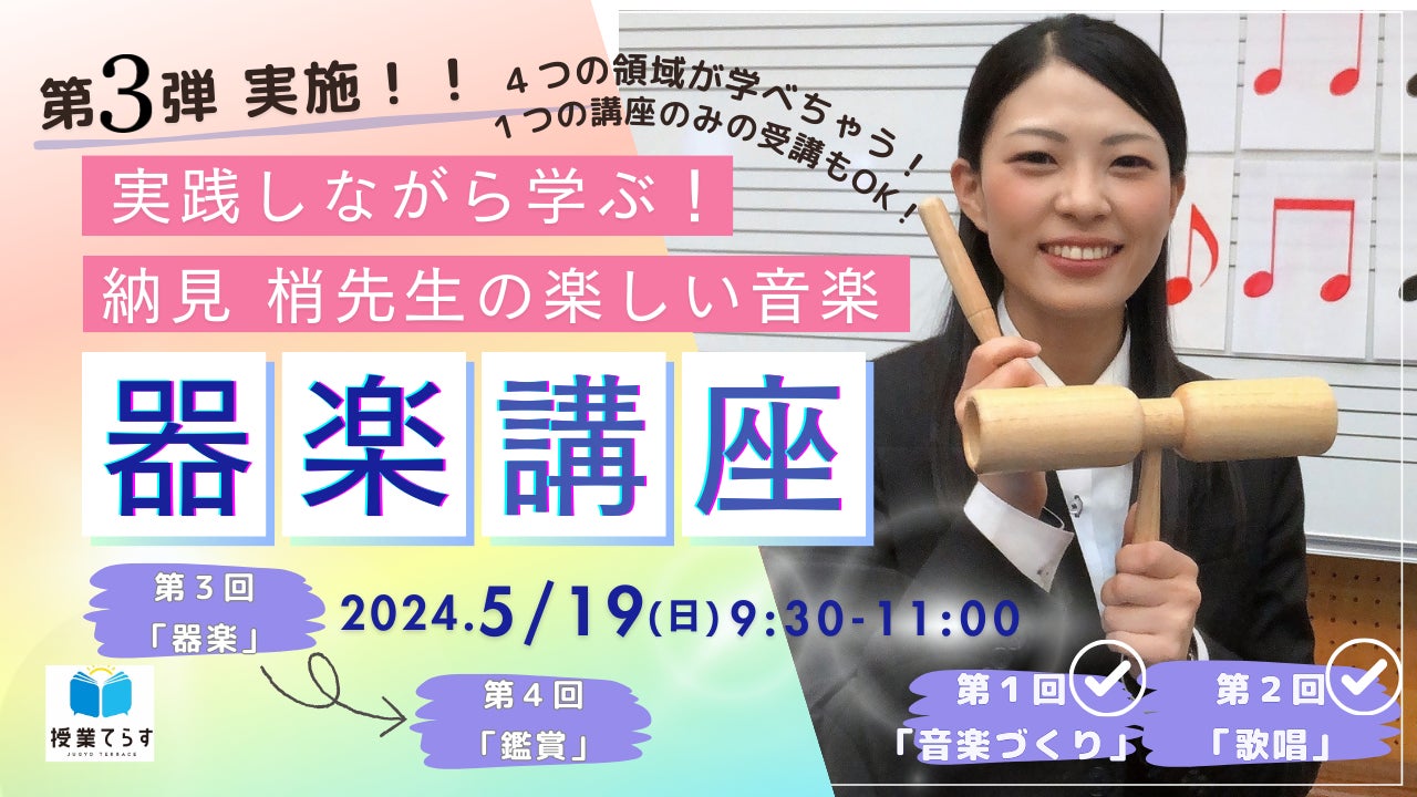 第3回目では鍵盤ハーモニカや小物打楽器の扱い方や授業展開に焦点を当てます。