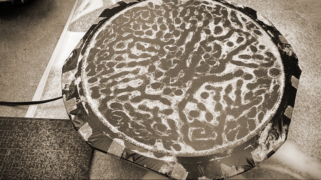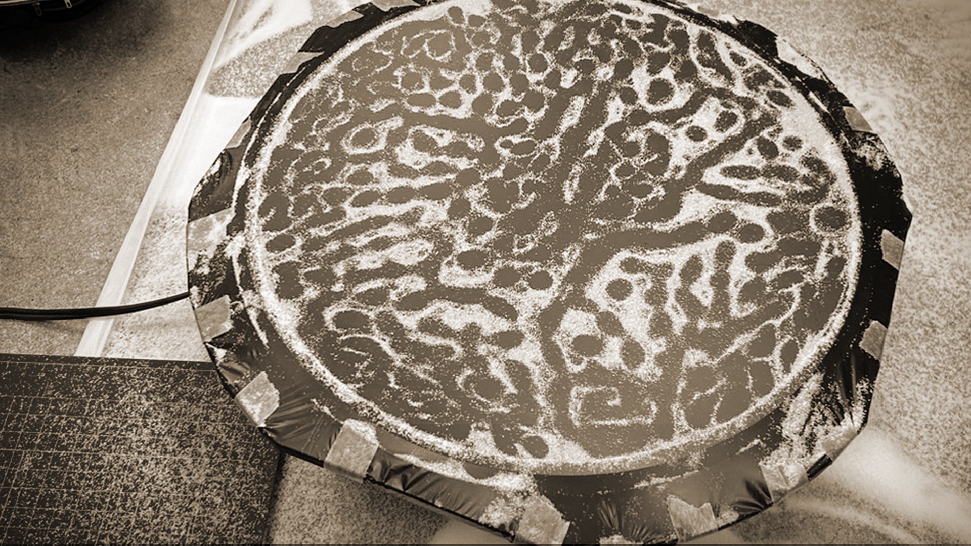 展示では、新作が発表され、歌詞の制作過程が再構築され、音の振動を作品化します。
