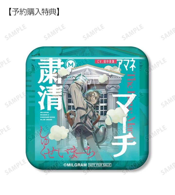 • 予約購入特典として「MILGRAM 第二審シングル アマネ『粛清マーチ』ジャケットスクエア缶バッジ AMNIBUS特典」が付属、価格は2,000円(税込)