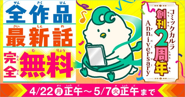 WEBコミックサイト「コミックカルラ」が2周年を迎え、全作品の最新話が期間限定で無料公開中です。