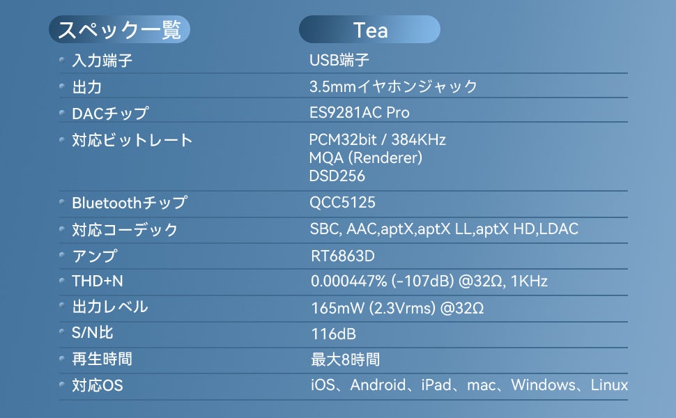 TeaはMagSafe対応の超薄型ポータブル式DACアンプで、MFI認証も取得している。