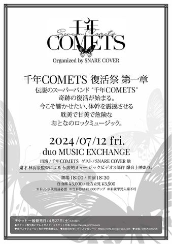 千年COMETSの復活祭は7月12日、渋谷duo MUSIC EXCHANGEで開催されます。