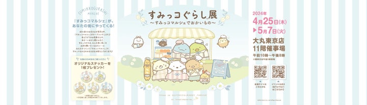 4月25日から5月7日まで、大丸東京店で開催される「すみっコぐらし展~すみっコマルシェでおかいもの~」の概要です。