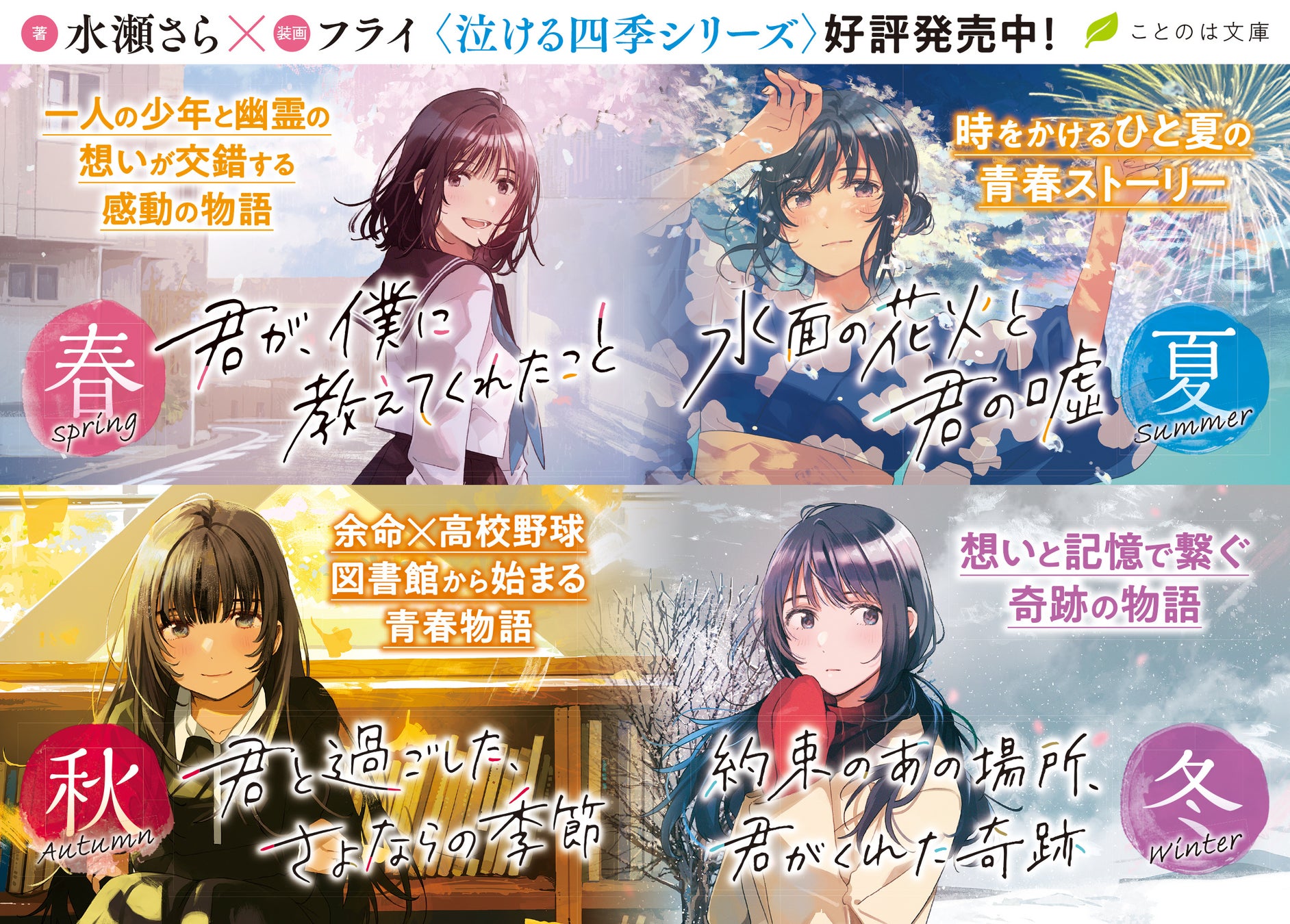 水瀬さら氏の作品は泣ける四季シリーズとして展開され、読者の心に響く物語が展開されています。