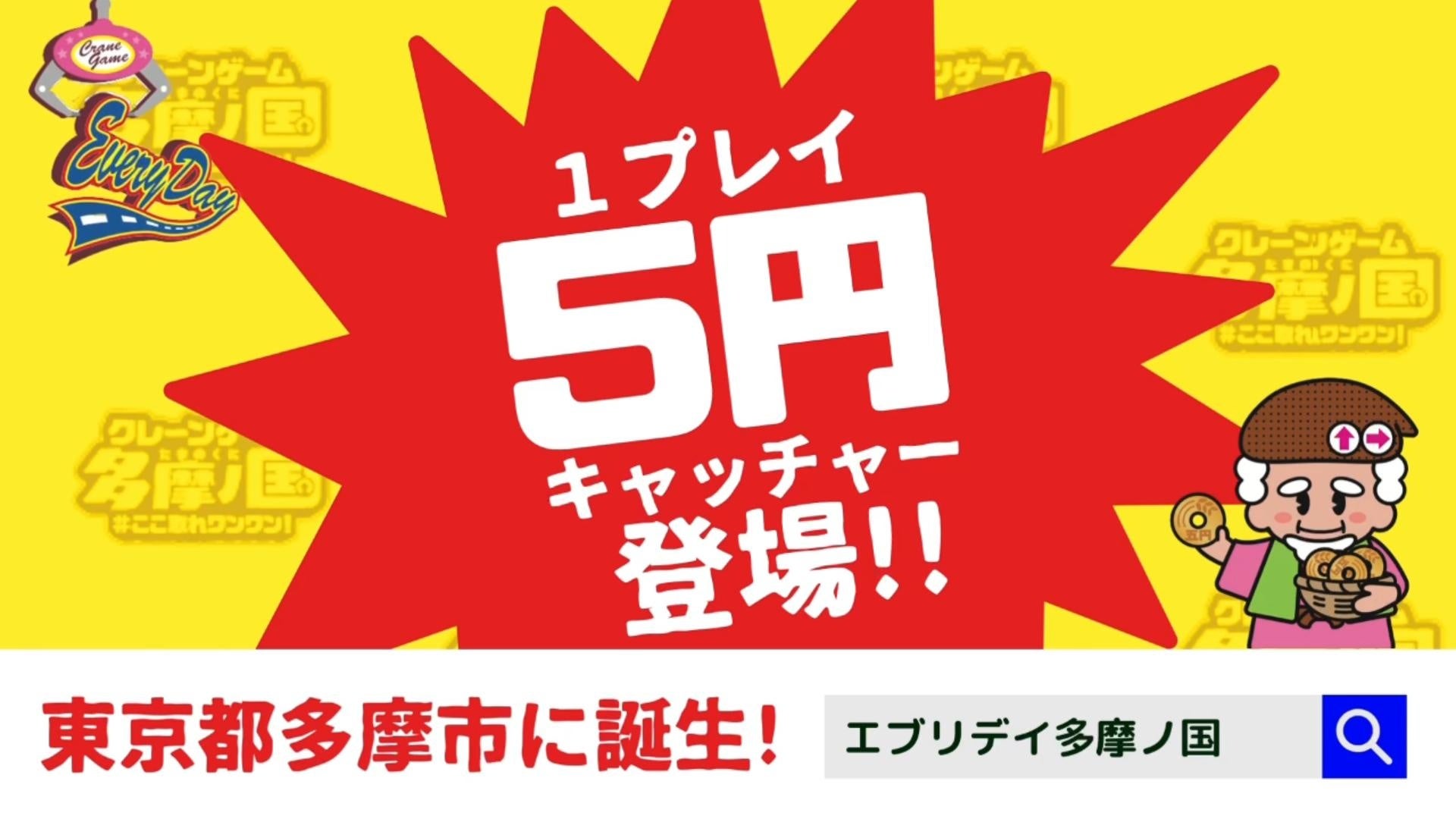2023年夏、東京都多摩市に大規模クレーンゲーム専門店「エブリデイ多摩ノ国店」がオープンする。
