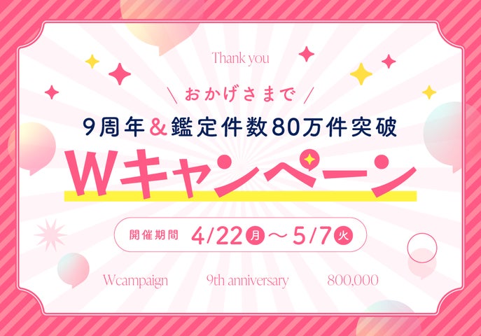 9周年と鑑定件数80万件突破を記念して、2つのスペシャルキャンペーンを実施中です。