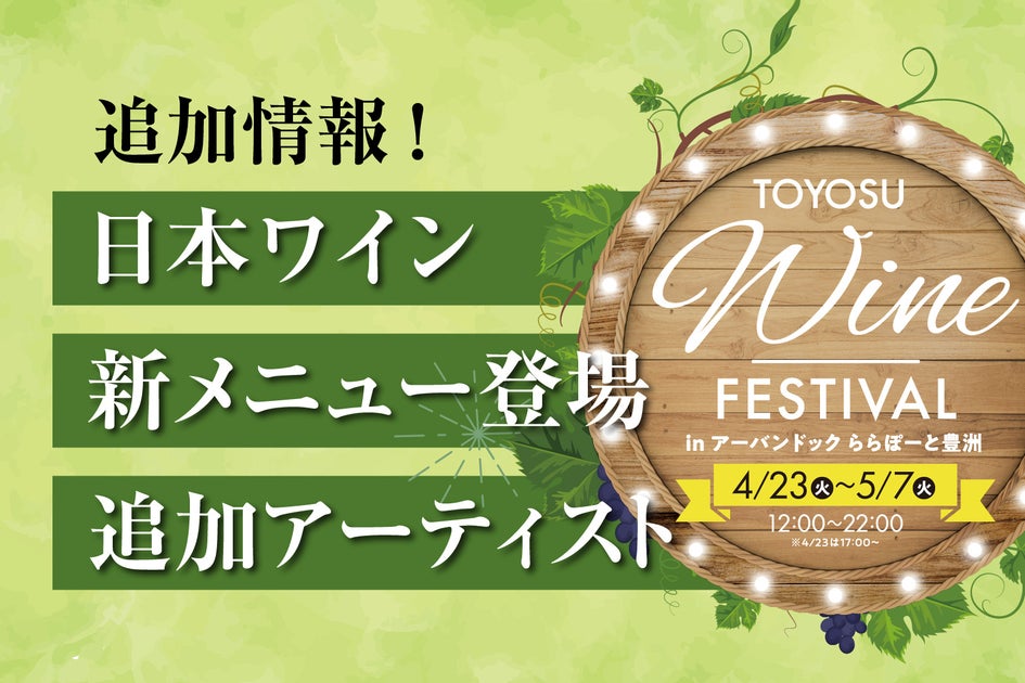 4月23日から開催される「TOYOSU WINE FESTIVAL in アーバンドックららぽーと豊洲」では、世界6か国のワインと日本ワインが楽しめます。