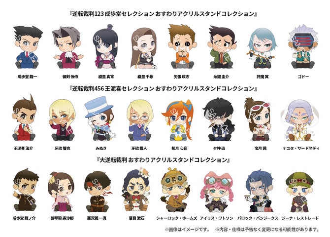 さらに、新規描き下ろしの「逆転裁判」と「大逆転裁判」シリーズのアクリルスタンド全24種も販売されます。