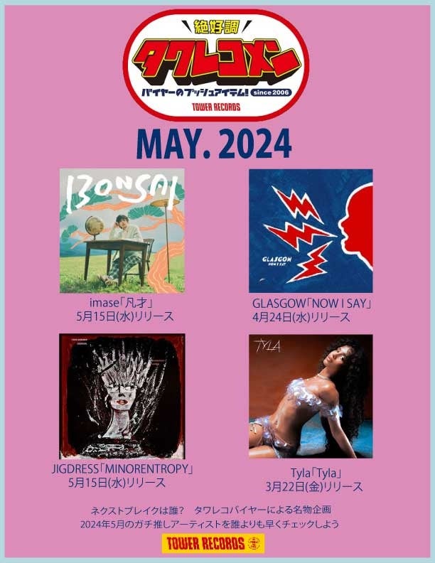 - 2024年5月のタワーレコードのタワレコメンラインナップが決定
