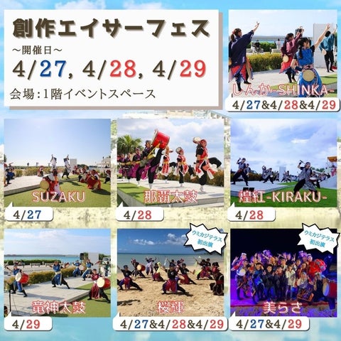 4月27日から3日間は創作エイサーフェスが開催され、7団体が独創的な演舞を披露します。