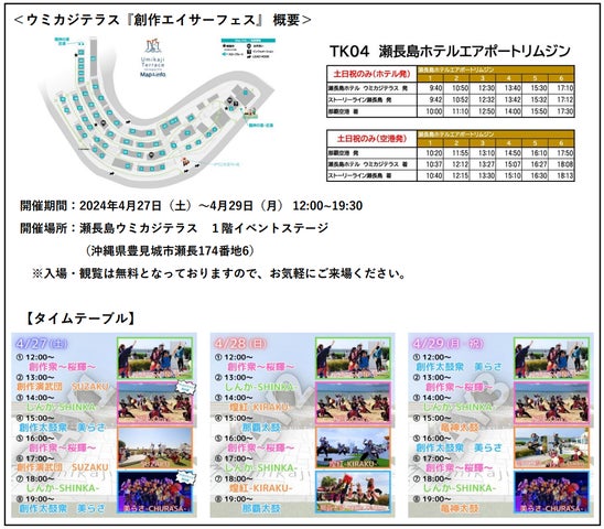 - 創作エイサーフェス、ウミカジテラスフォトコンテスト2024、瀬長島GOOD MORNING FESTA