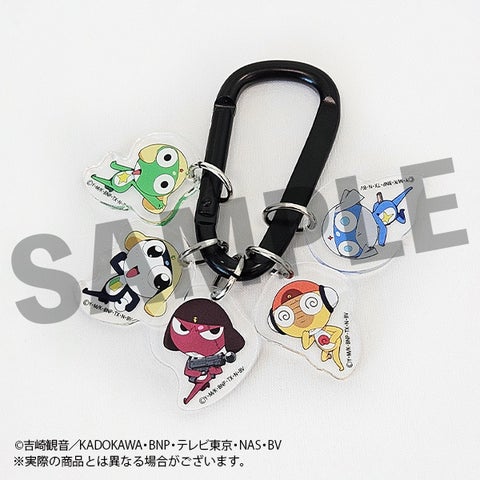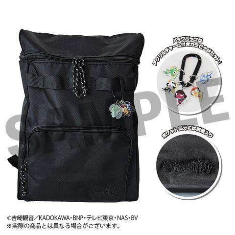 バックパックにはロゴが刺繍され、アクリルチャームにはケロロ小隊がデザインされています。