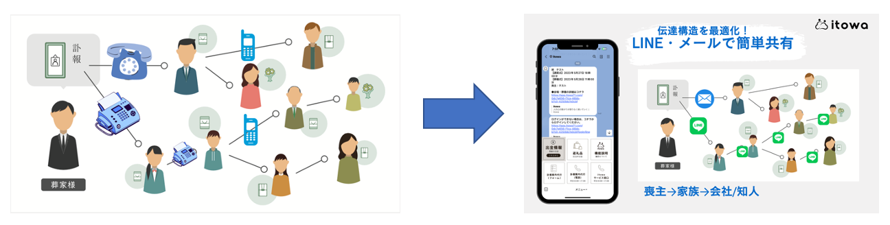 葬儀デジタルプラットフォームのitowa(いとわ)LINE機能を追加し訃報共有に圧倒的利便性、参列者200名を目指す