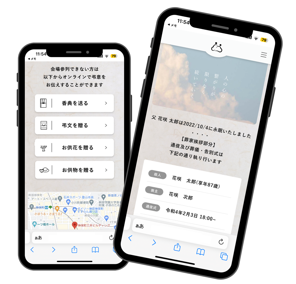 「いつでも弔う、忘れない」の頭文字をとった「itowa(いとわ)」。この弔意を誰もが厭(いと)わないで欲しいという願いが込められています。itowaは弔意をカタチにするプラットフォームです。itowaを導入することで、葬儀社はプラットフォームを通じで参列者の増加が見込め、喪主・葬家にとっては参列者のリスト管理や返礼品の手配などの葬儀に関係する負担が減ります。また昨今の家族葬の増加や遠方や高齢などの理由から、葬儀に参加したくてもできなかった利用者にとっては、同プラットフォームを通じていつでも弔うことが可能になります。