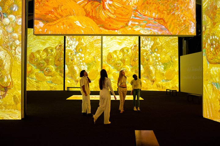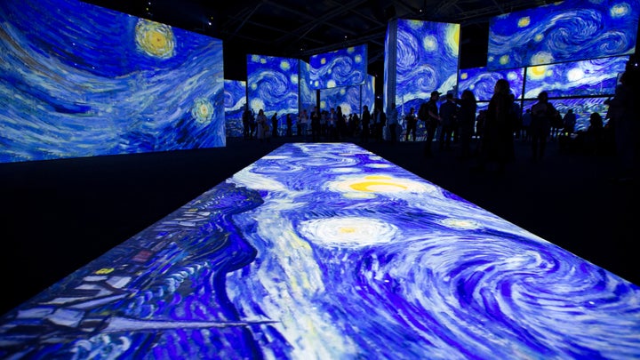 この没入型展示は900万人を魅了し、ゴッホの名作画像がクラシック音楽と共に再現され、来場者を別世界へ誘います。