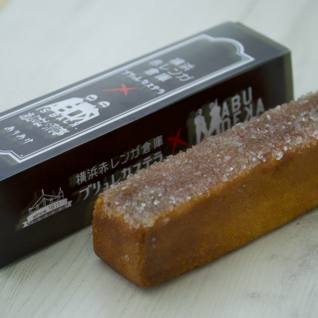 横浜赤レンガ倉庫で販売される「横浜赤レンガ倉庫ブリュレカステラ×帰ってきた あぶない刑事」は、硬派なデザインで、カステラ生地にブリュレ加工が施されています。