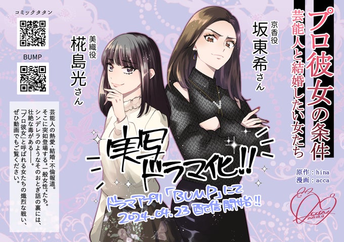 - 株式会社PHIERが手掛ける映像制作で人気のコミック「プロ彼女の条件 芸能人と結婚したい女たち」が実写化され、全16話のショートドラマが本日BUMPアプリで一挙配信