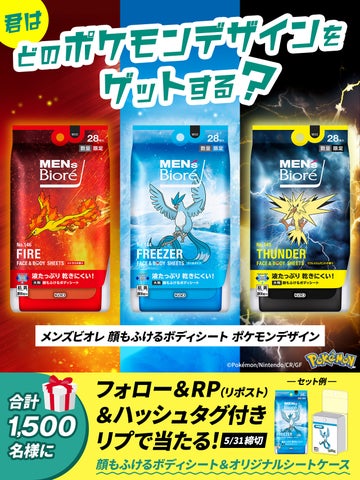 花王のメンズスキンケアブランド「メンズビオレ」が、2024年5月18日から数量限定で「ポケモン」デザインの「顔もふけるボディシート」を発売します。