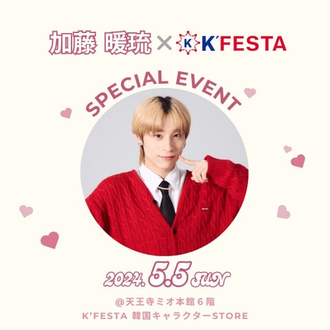 2024年5月5日、天王寺ミオのK’FESTA韓国キャラクターSTOREで加藤暖琉さんの来店イベントが開催されます。