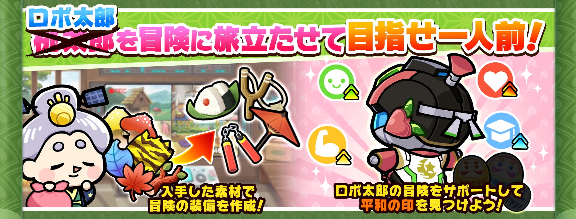 他にも、「ロボ太郎」がオニ退治に行くようになるなど、より楽しんでいただけるアップデート内容となっておりますので、ぜひ『桃太郎失格』をアップデートしてお楽しみください!