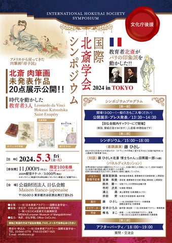 2024年5月3日に開催される「国際北斎学会シンポジウム2024 in TOKYO」では、日仏の文化交流や日本の漫画文化、アニメーション、伝統文化と北斎アートの関係に焦点を当て、次世代へのメッセージを探ります。