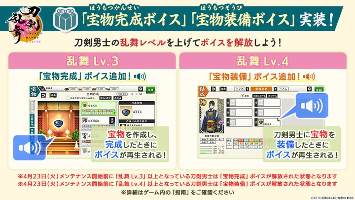 また、新機能として「宝物帳」や「宝物完成ボイス」「宝物装備ボイス」などが実装されました。