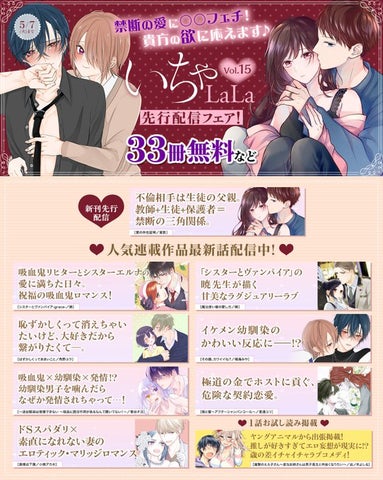 4/24から「いちゃLaLa」Vol.15の配信がスタート!禁断の愛やフェチ漫画が満載で、白泉社e-net!や一部書店で先行配信中です。