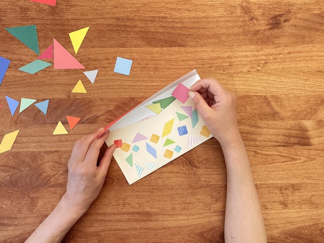 パーツを使って図形を作り、色や配置を考えることで集中力や想像力を育む内容です。