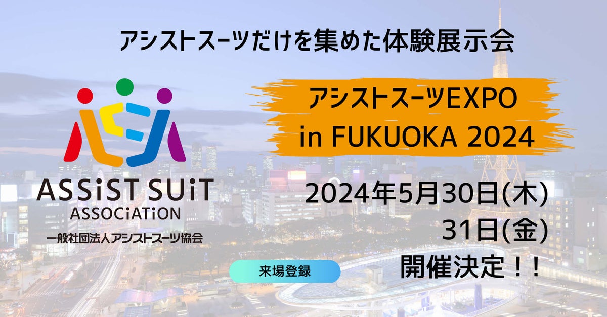 アシストスーツ協会は、2024年5月30日(木)~31日(金)に福岡で初の体験展示会「アシストスーツ EXPO in FUKUOKA 2024」を開催します。