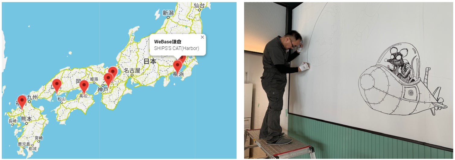 SHIP’S CATは、WeBaseが運営する5つの宿泊施設に佇む巨大な猫の像であり、船乗り猫としての役割や絆を象徴しています。