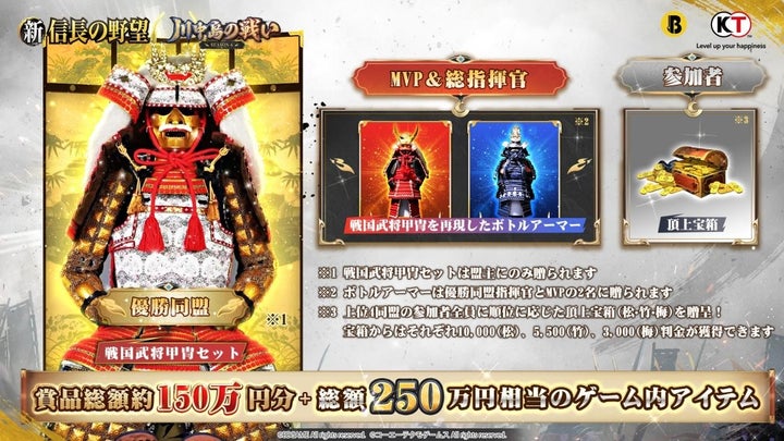 優勝者と上位同盟には総額400万円相当の豪華賞品が贈られます。
