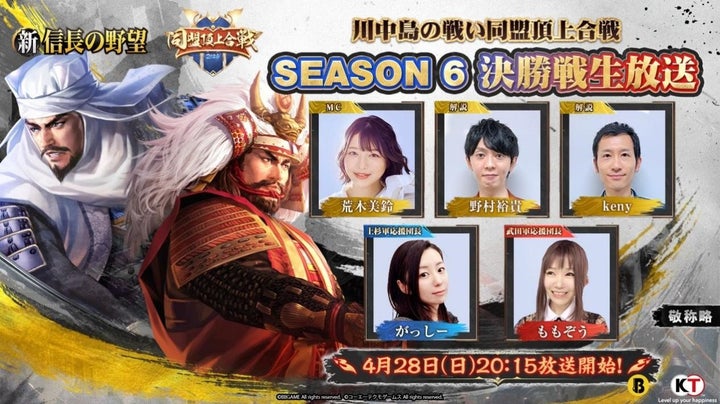 『新信長の野望』川中島の戦いSeason6の決勝戦が4月28日に開催されます!同盟「絆2」と「孤軍奮闘」が激突します。