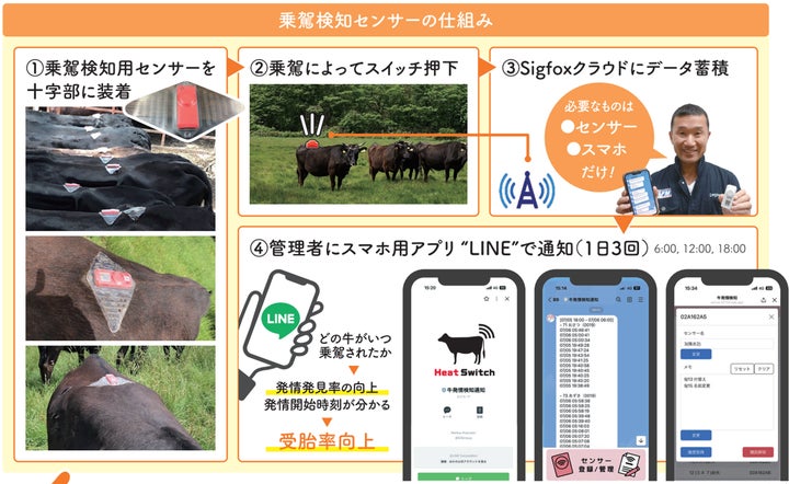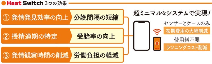 同社が開発した「Heat Switch(ヒートスイッチ)」は、雌牛の発情をセンサーとスマートフォンで検知する画期的なシステムで、2024年5月に発売予定です。