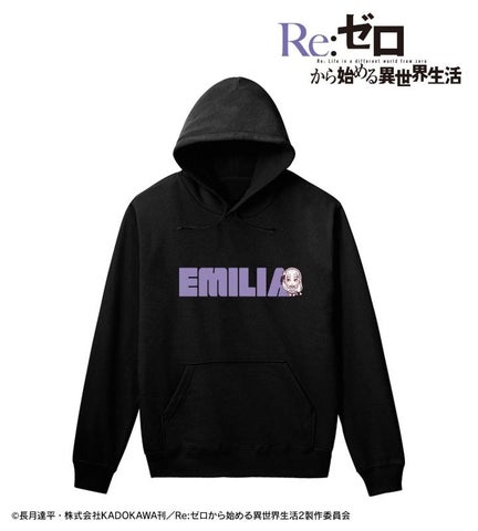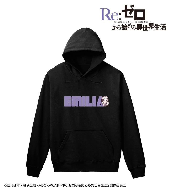 アクリルキーホルダーやアクリルカード、缶バッジなどのキャラクターグッズが登場しており、さらにエミリアやレムのちびキャラがデザインされたパーカーやTシャツも販売されています。