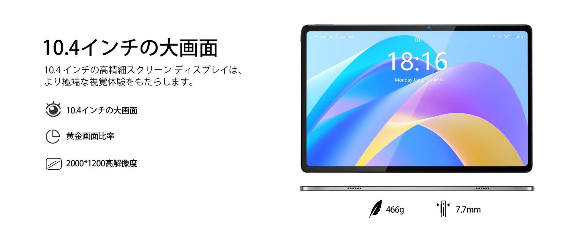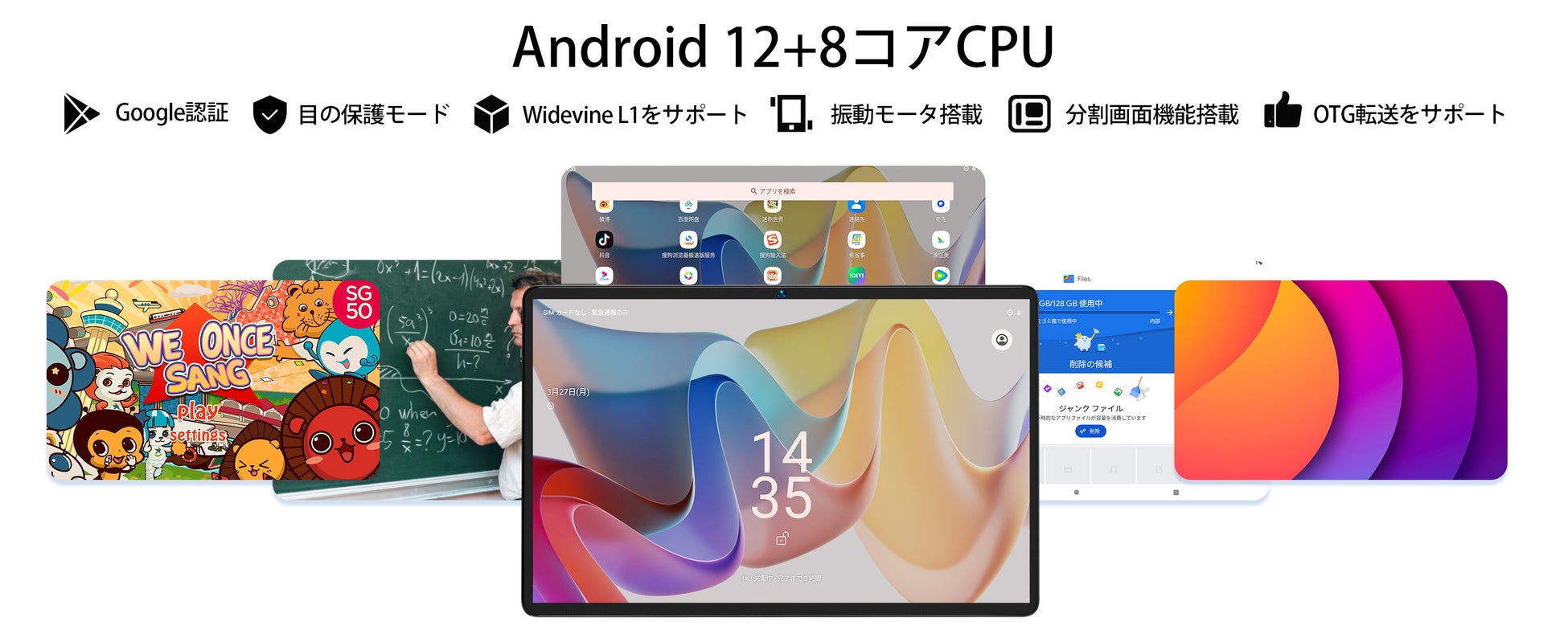 このタブレットは、UNISOC T616の8コア高速処理チップを搭載し、最新のAndroid 12を搭載している。