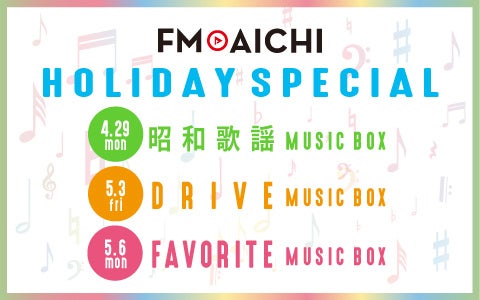 4月29日は「昭和歌謡 MUSIC BOX」で昭和の名曲、5月3日は「DRIVE MUSIC BOX」でドライブソング、5月6日は「FAVORITE MUSIC BOX」でリスナーのお気に入りソングを特集します。