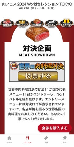- 肉フェス 2024 Worldセレクション TOKYO、肉フェス公式アプリ、世界の肉料理対決、コラボコンテンツ、肉地球イルミネーション、ステージイベント