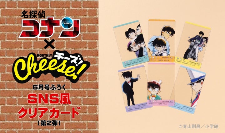「Cheese!」6月号の付録は、『名探偵コナン』とのスペシャルコラボ第2弾!コナン、新一、服部平次、怪盗キッドの原作イラストを使用したSNS風クリアカード6枚セットが特典として付いてきます。