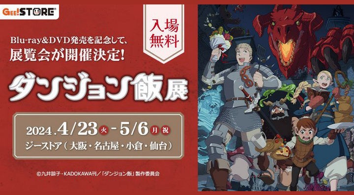 2024年4月23日から5月6日まで、ジーストア大阪、名古屋、小倉、仙台で『ダンジョン飯』展が開催されます。