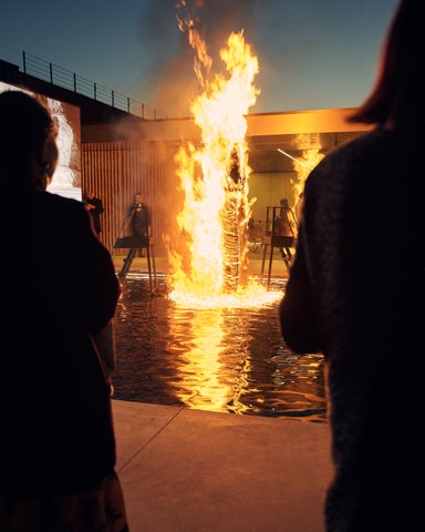 クリエイティブな空間では、アーティストたちが特別なパフォーマンスを披露し、彫刻家ファビオ・ヴィアーレは大理石の柱を彫刻に変えるインスタレーションを披露しました。