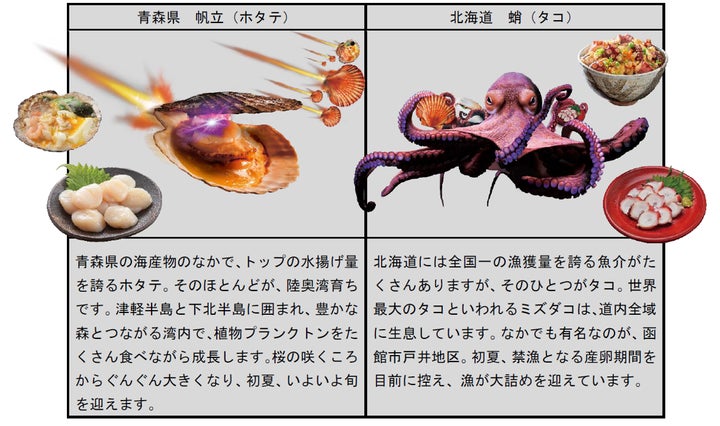 青森県の帆立と北海道の蛸をテーマにしたポスターや特設サイト、プロモーション動画が用意されます。