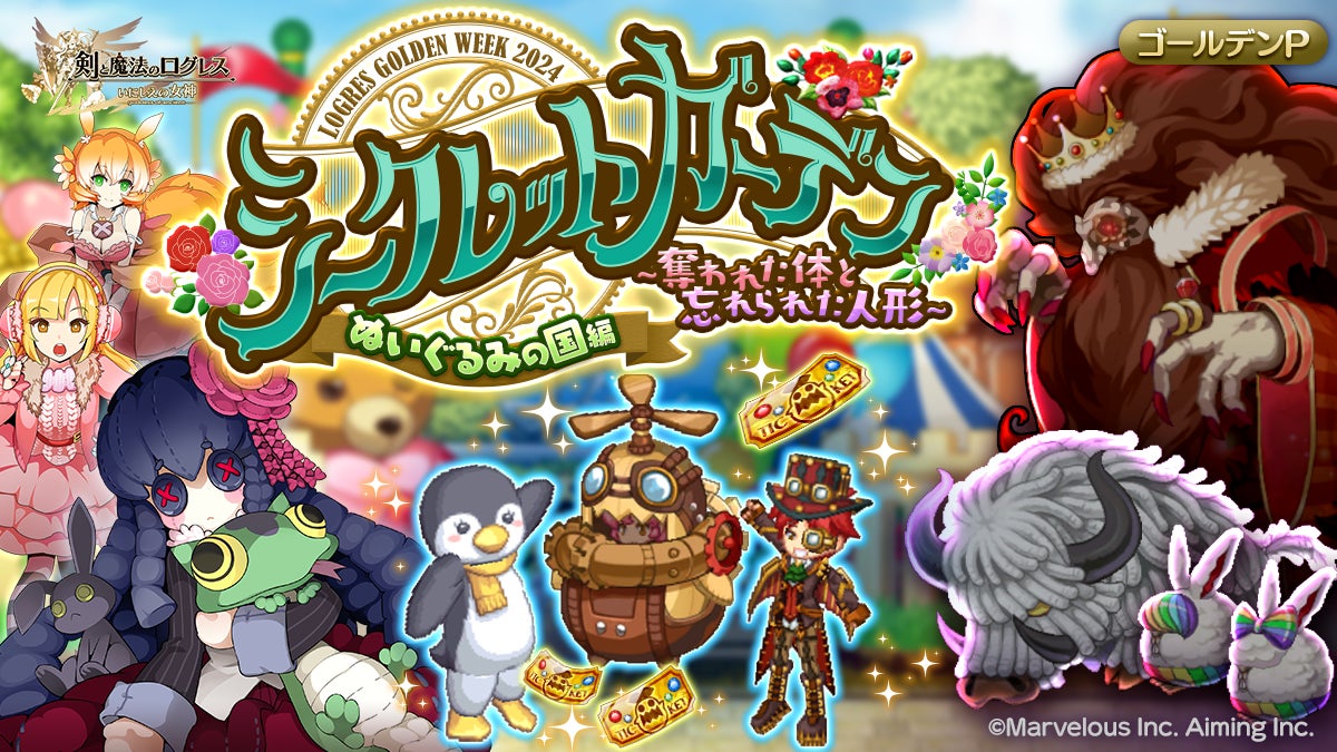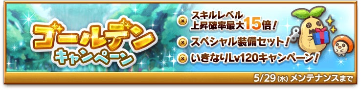 - ゴールデンガチャチケット、新イベント「シークレットガーデン~奪われた体と忘れられた人形~」、限定アバターや武器、ジョブ別GWガチャ、滅剣ジャガーノート確率アップリーフガチャ、ゴールデンキャンペーン、選抜10連ガチャ、素材ドロップ2倍キャンペーン